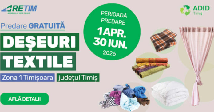 RETIM Ecologic Service S.A., în colaborare cu ADID Timiș, a lansat o campanie importantă pentru colectarea deșeurilor textile, adresată locuitorilor din Zona 1 Timișoara. Aceasta va începe în data de 1 aprilie 2026 și se va desfășura pe o perioadă de trei luni, până pe 30 iunie 2026. Scopul campaniei este de a oferi un mod prietenos cu mediul și legal pentru debarasarea textilelor uzate, asigurând în același timp predarea gratuită a acestora.